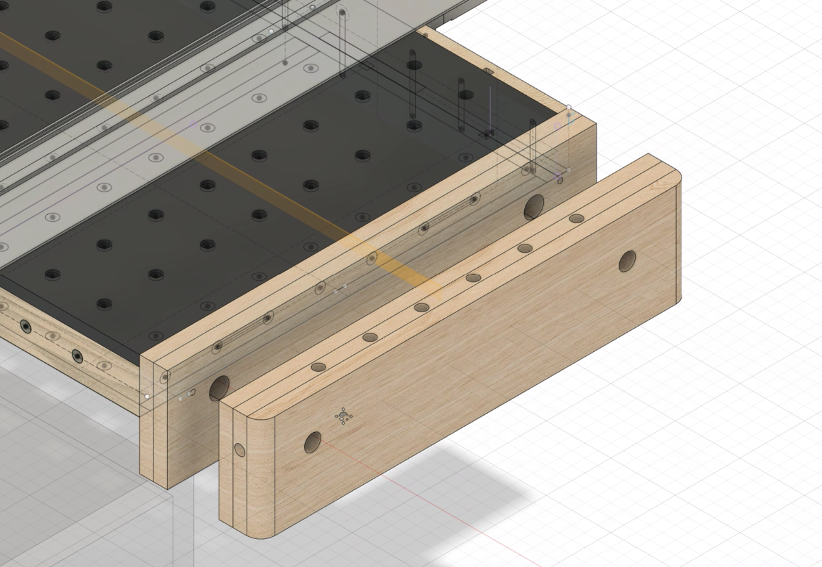 Zu lange hatte ich mich um die Komplettierung meiner Werkbank gedrückt. Jetzt endlich hat sie auch eine ordentliche Hinterzange. Durch die zwei Spindeln bleibt die Spannzange parallel, obwohl sie über die gesamte Tiefe der Werkbank (ca. 80 cm) geht.